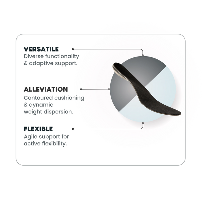 The Everyday Orthotic device is the perfect choice for anyone with mild all over foot discomfort. Providing all-day cushioned comfort, this orthotic solution promotes natural biomechanics and increased endurance. Designed to fit into a wide range of casual and athletic footwear.